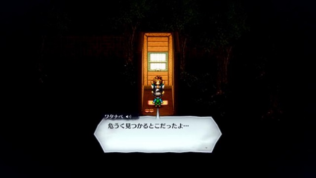ワタナベとの会話でトイレに来てと言われるので脱衣所へ向かいます、脱衣所には妙子がいるので話しかけて洗濯機の前から退かしましょう。