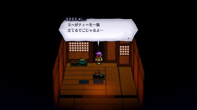 天守四階にある部屋の隠し扉の先へ進もうとすると、怪しげな人物(?)と会話が発生します。