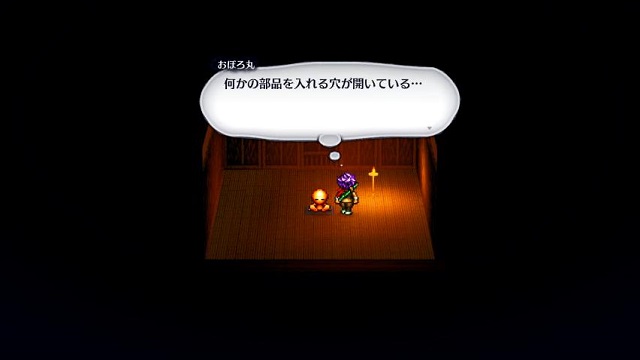小判を入れた穴のある部屋に戻り、再び右上の小さな穴に残り一枚の小判を入れるとカラクリ丸を部屋の外へ連れ出せるようになります。