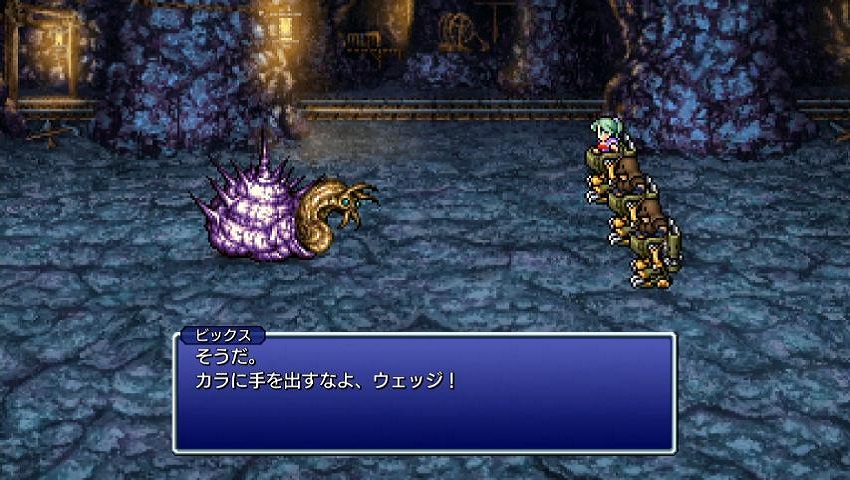 FF6の最初のボスモンスター、殻にダメージを与えると「1万ボルト」で反撃されるので頭の方を狙いましょう。