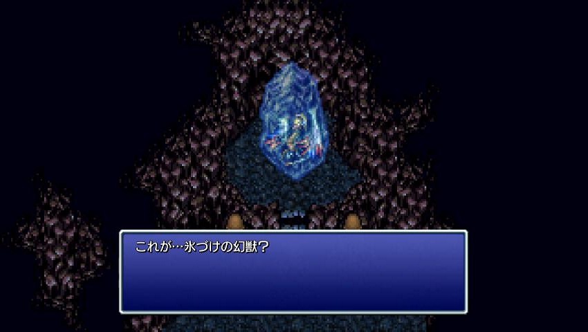 奥へ進んで行くと、氷漬けの幻獣がありイベントが進行します。ビックスとウェッジはここで退場です