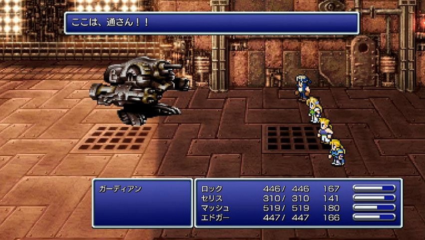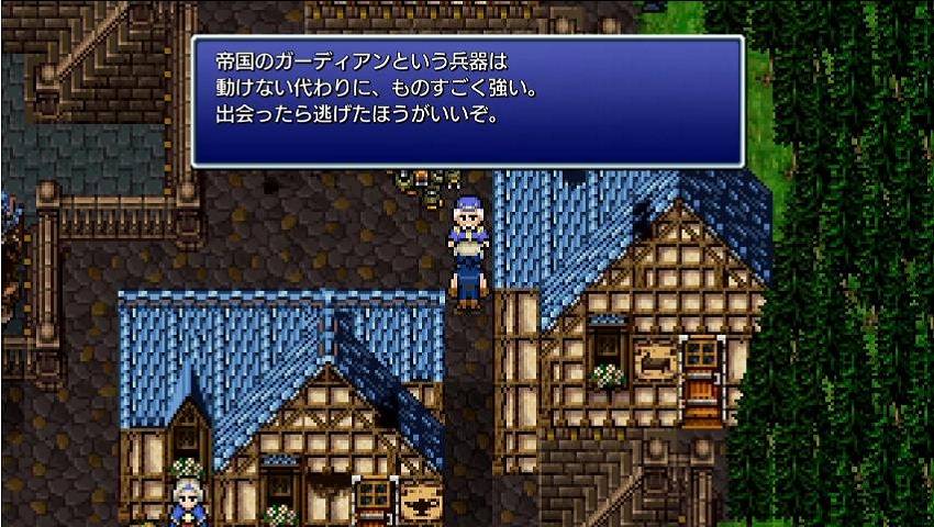 都市の北側にいる兵士や魔導アーマーと接触すると戦闘になり、更に奥に進もうとするとガーディアンとの戦闘になります。