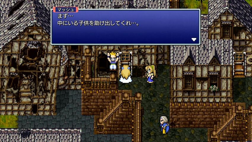 マッシュに話し掛けると、崩れかけた家の中から子供を救出する事となります。
