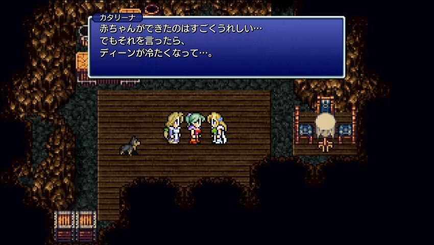 飛空艇入手後に訪れると、カタリーナが妊娠しディーンと上手く行かず悩みティナが慰めています。
