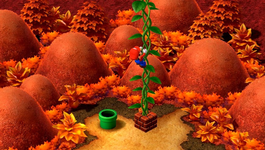 クイーンフラワーを撃破し、ブロックをたたくと豆の木が伸びていくのでこれをよじ登って行きます。